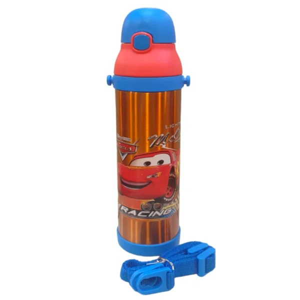 Fuel your kid’s energy with the McQueen-themed stainless steel water bottle, designed for both fun and function! With its leakproof flip-top lid, built-in straw, and adjustable strap, this durable bottle is perfect for school, outdoor play, or travel. Keeps drinks hot or cold and brings the excitement of Cars wherever your little racer goes!